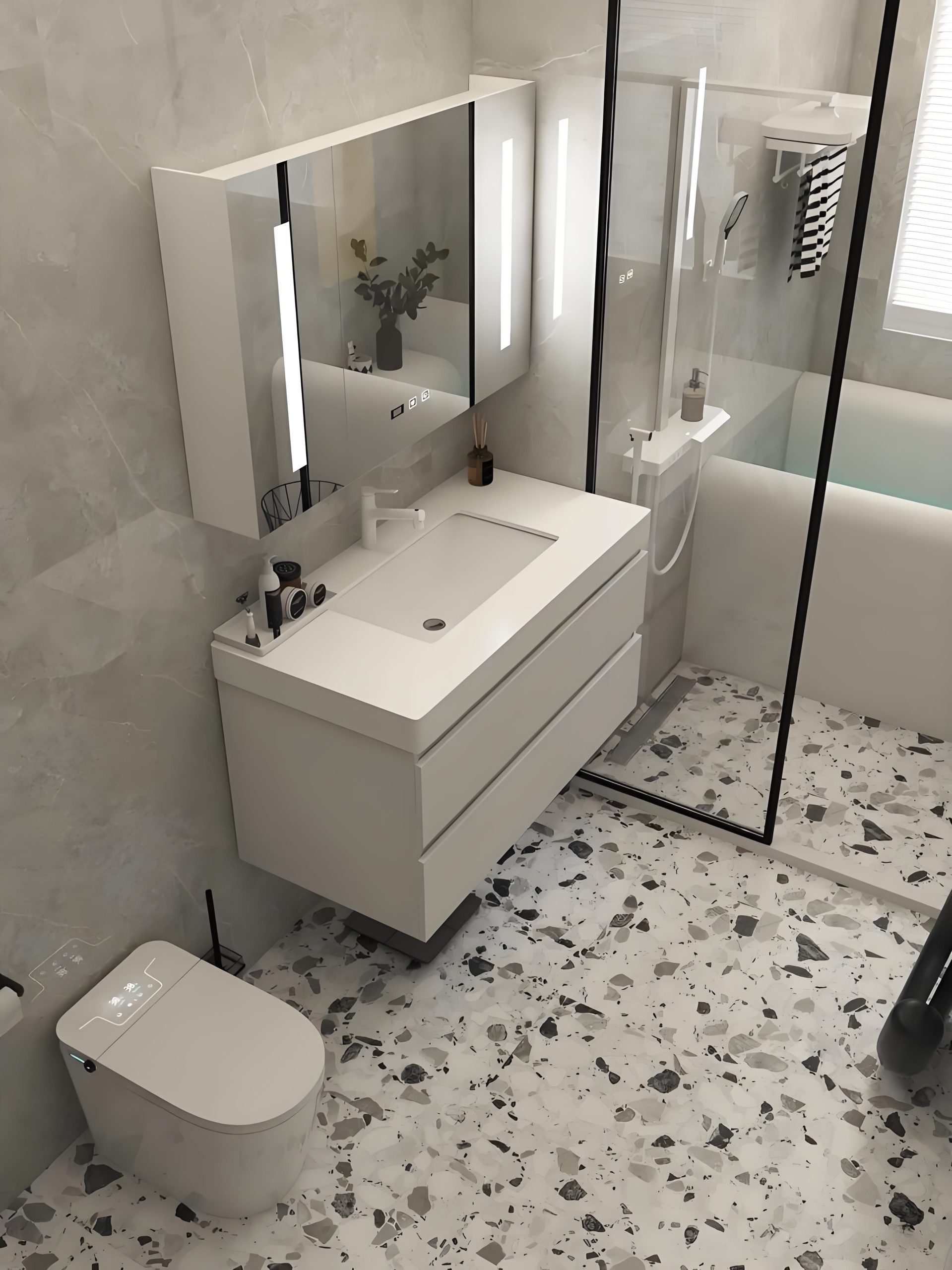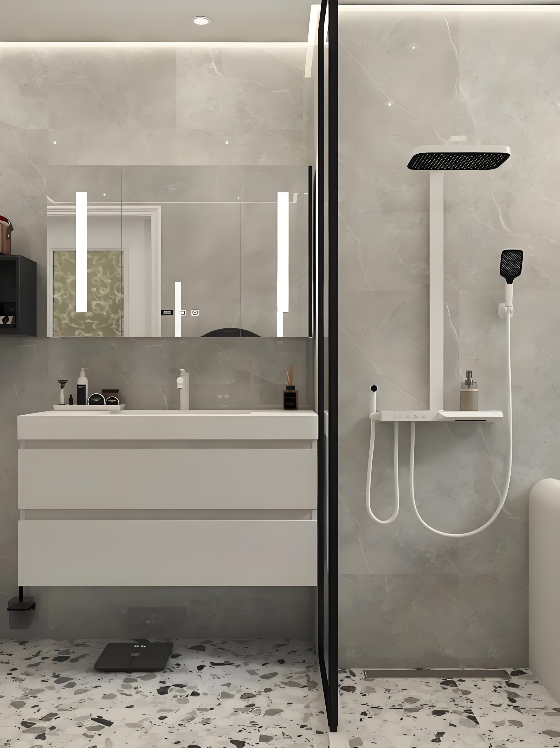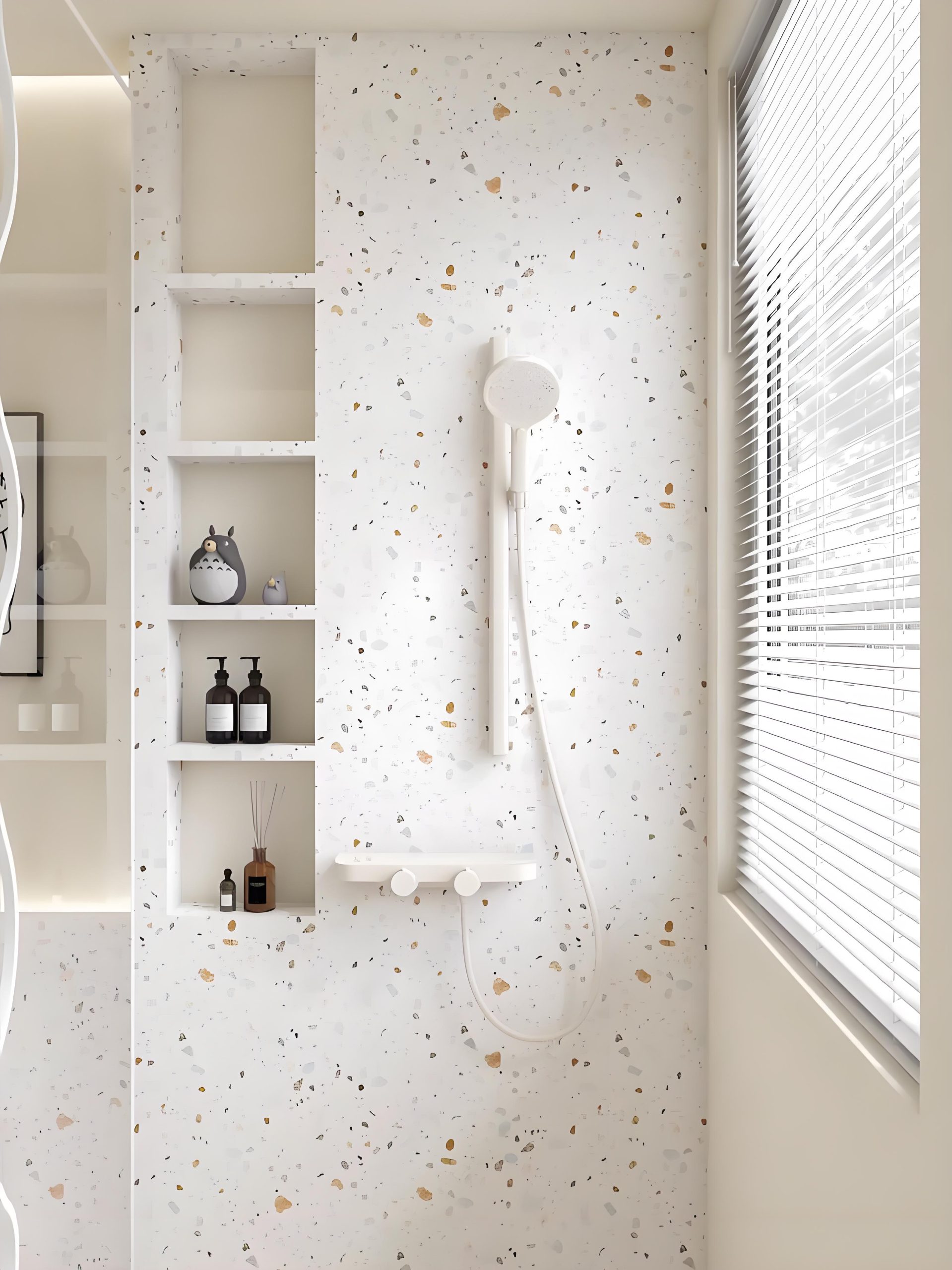 - ?衛(wèi)浴地面/墻面?:防滑防水,搭配暖色石粒提升空間質(zhì)感?。